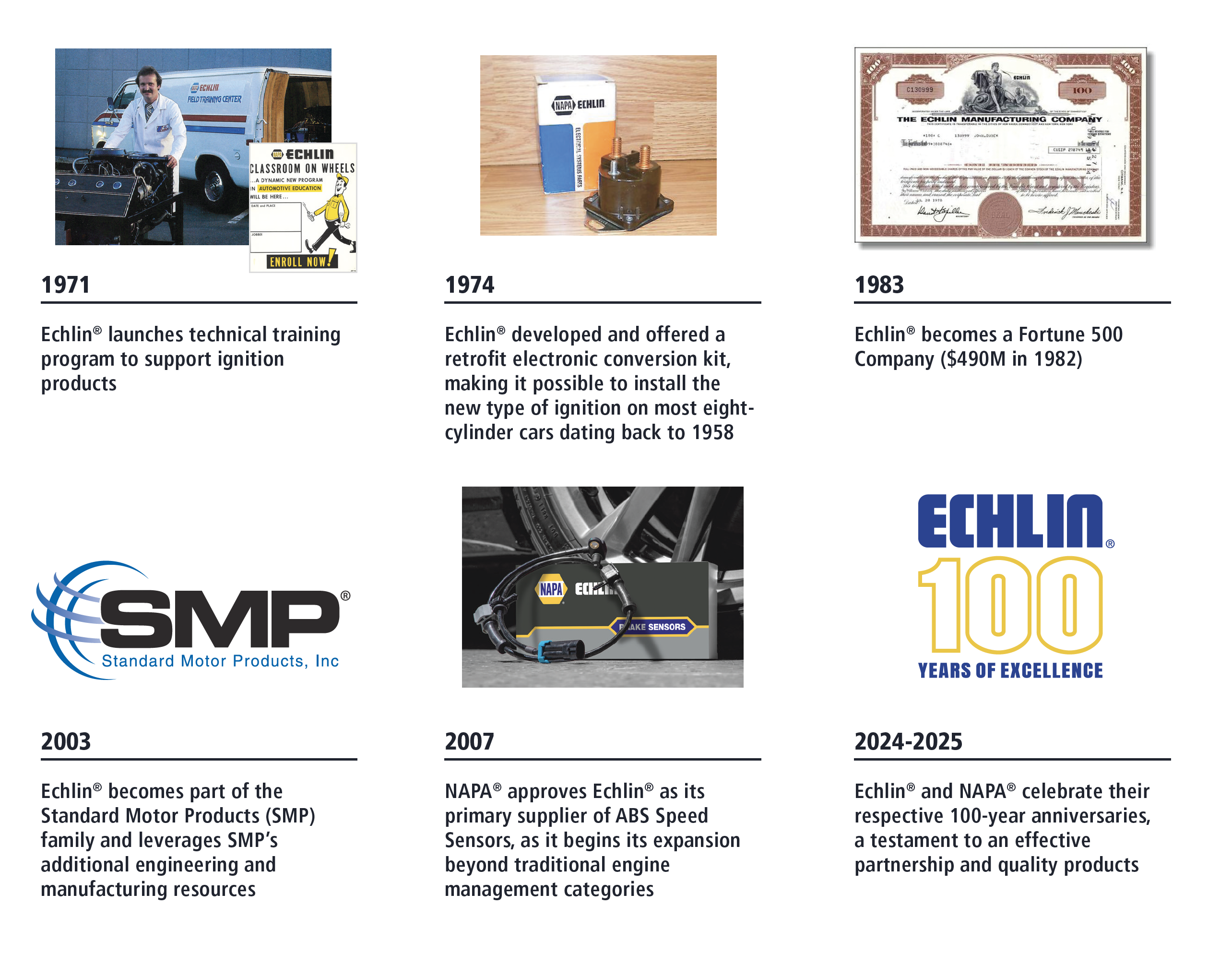 Since 1924, Echlin® has thrived in an industry that is constantly evolving. Now, as Echlin® celebrates 100 years, we remember its storied history, enduring partnership with NAPA®, and the milestones that have made Echlin® a nationally recognized and trusted brand.